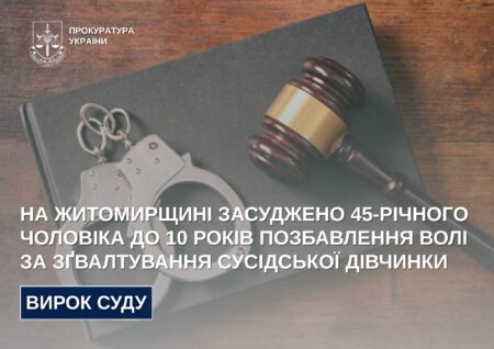 На Житомирщині засуджено 45-річного чоловіка до 10 років позбавлення волі за зґвалтування сусідської дівчинки22.10.2025