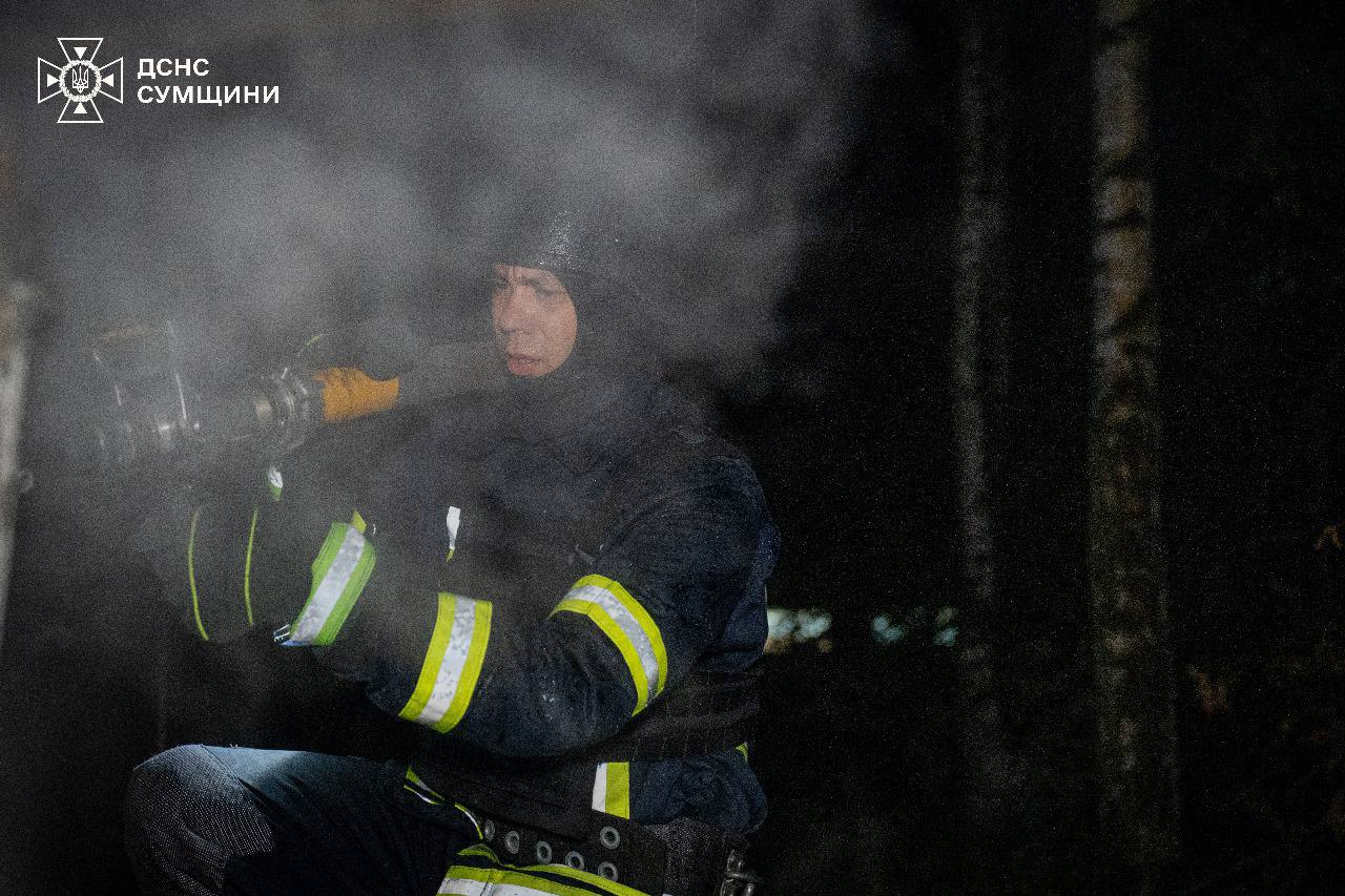 У м. Суми пошкоджені помешкання громадян, нежитлові будівлі, авто та магазин. Постраждала 1 людина. Рятувальники ліквідували пожежу та провели обстеження території.