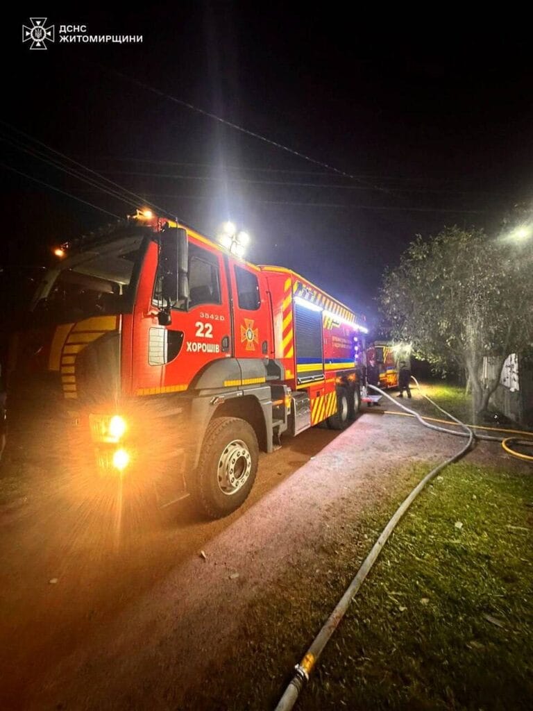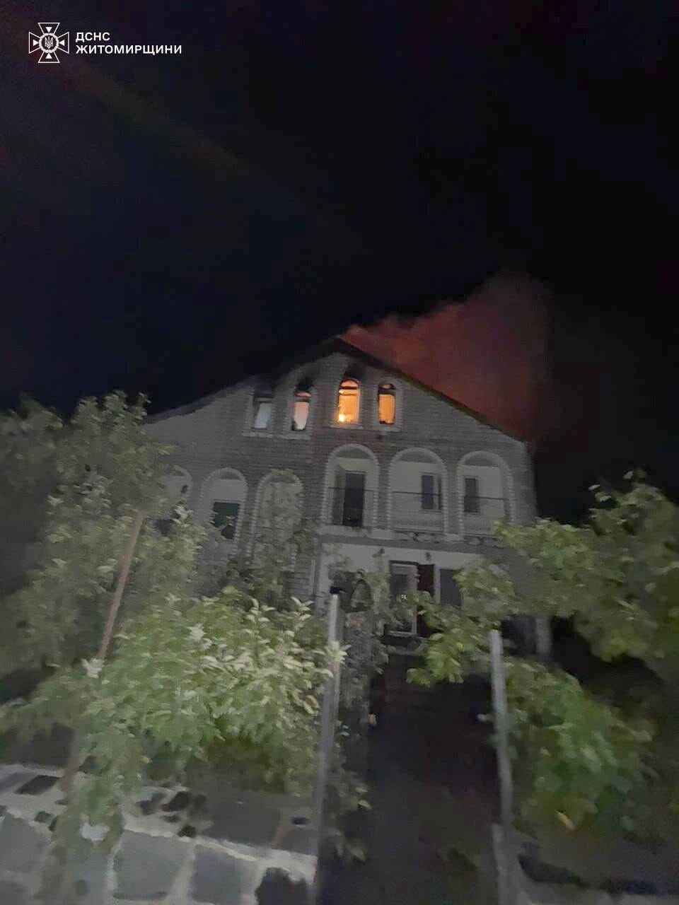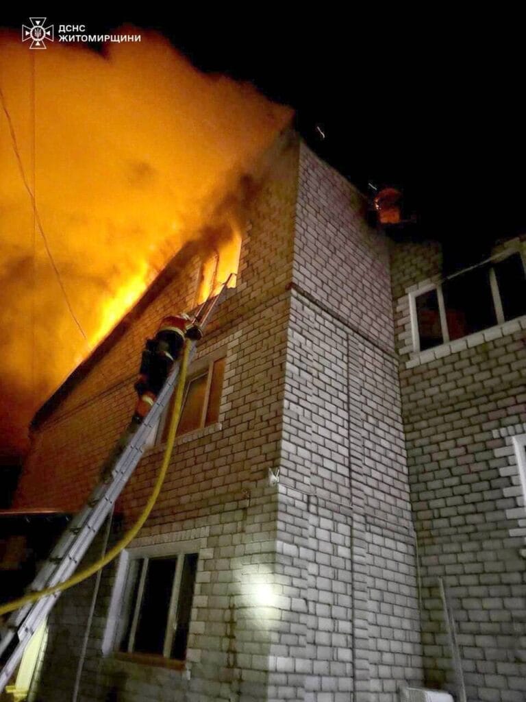 Вночі вогнеборці ліквідували пожежу у триповерховому приватному житловому будинку. Надзвичайна подія сталася в селищі Хорошів Житомирського району. Вогонь охопив третій поверх оселі. Площа пожежі складала близько 360 кв. м. Ускладнювало гасіння сильне задимлення та нестандартне розташування сходових клітин та кімнат.