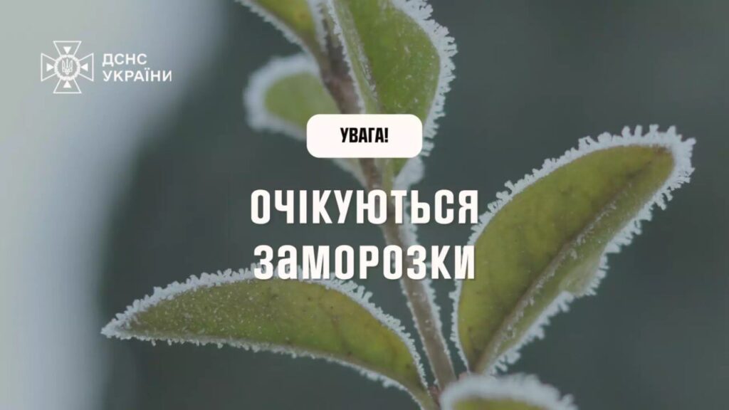 У ніч із 2 на 3 жовтня у західних областях, а також у Житомирській та Вінницькій на поверхні ґрунту очікуються заморозки 0–3°. Це I рівень небезпеки (жовтий) — можливе пошкодження сільськогосподарських культур та рослин.