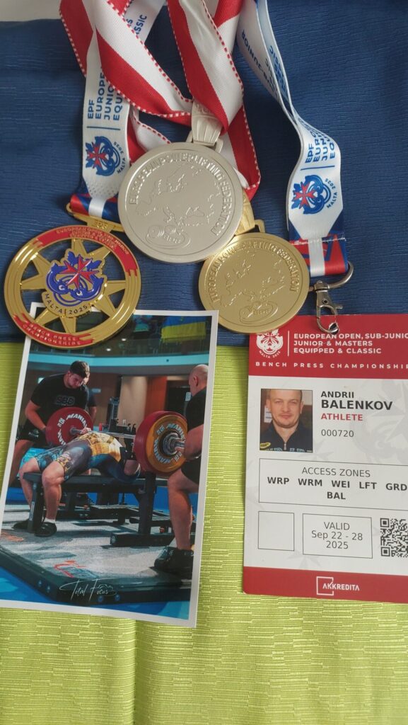 У складі збірної України на першості Європи з пауерліфтингу блискуче виступив представник Житомирщини Андрій Баленков виборовши срібло серед чоловіків у ваговій категорії до 83 кг. з вражаючим результатом – 270 кг у жимі лежачи!