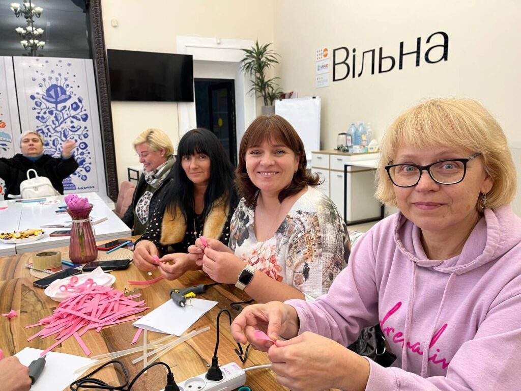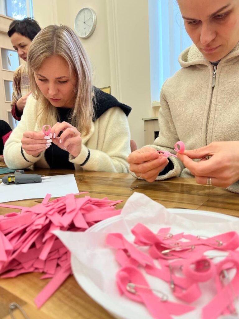 Фахівці Міського культурно-спортивного центру підготували для всіх учасників рожеві стрічки — символ турботи й підтримки.