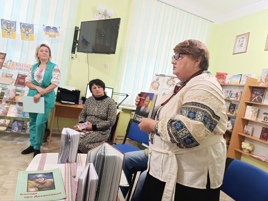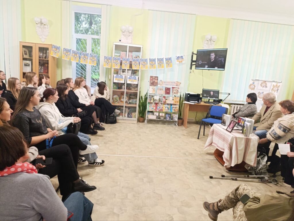 Затишно і одночасно насичено організувала і провела патріотично-виховну годину “Уклін усім, хто край свій боронить” Лідія Охріменко, просвітняка, завідувачка філії №1 КЗ “Міські публічні бібліотеки” Житомирської міської ради. Для знайомства зі знаними письменниками, журналістами, просвітянами Житомира до книгозбірні завітали студенти кафедри початкової освіти Житомирського державного університету ім. І. Франка.