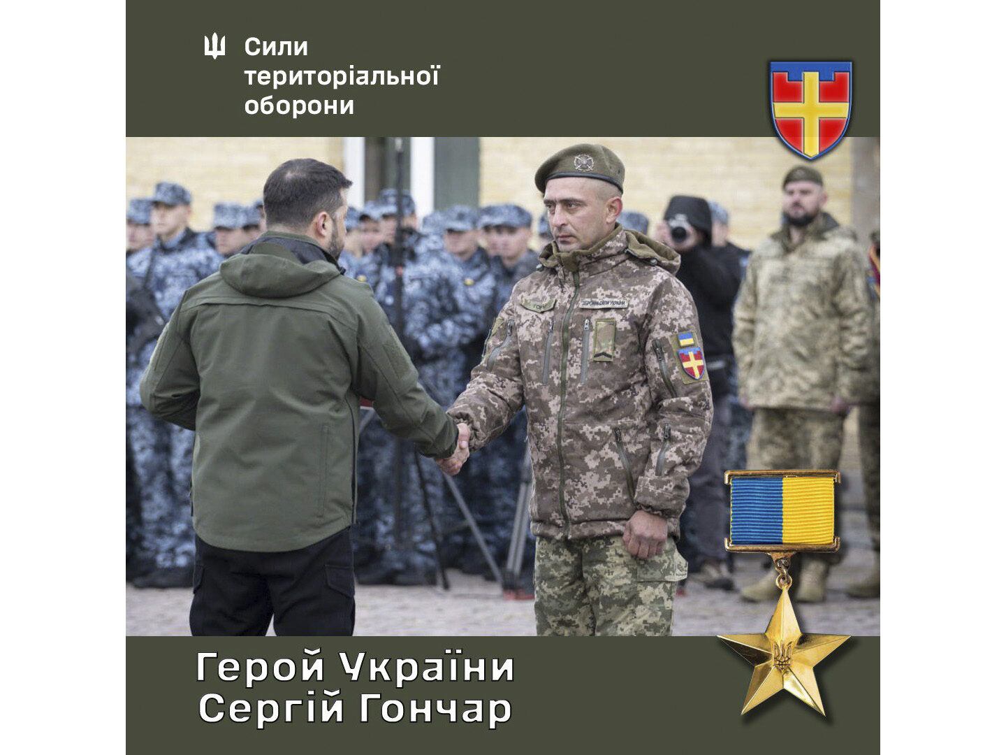Президент України Володимир Зеленський вручив найвищу Державну нагороду — Золоту Зірку Героя України нашому земляку, старшому солдатові 115-ї окремої бригади Сил територіальної оборони Сергію Гончару.
