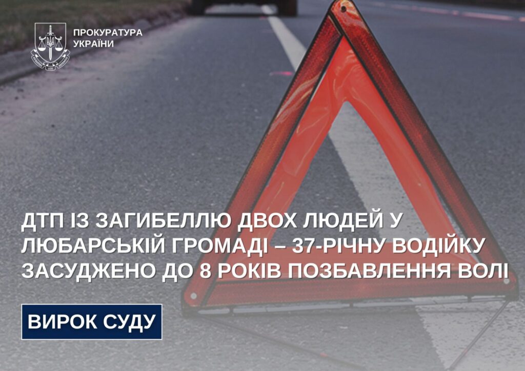 За підтримання публічного обвинувачення Житомирської обласної прокуратури Корольовський районний суд м. Житомира визнав жінку винною та призначив покарання у виді 8 років позбавлення волі з позбавленням права керувати транспортними засобами на строк 10 років.