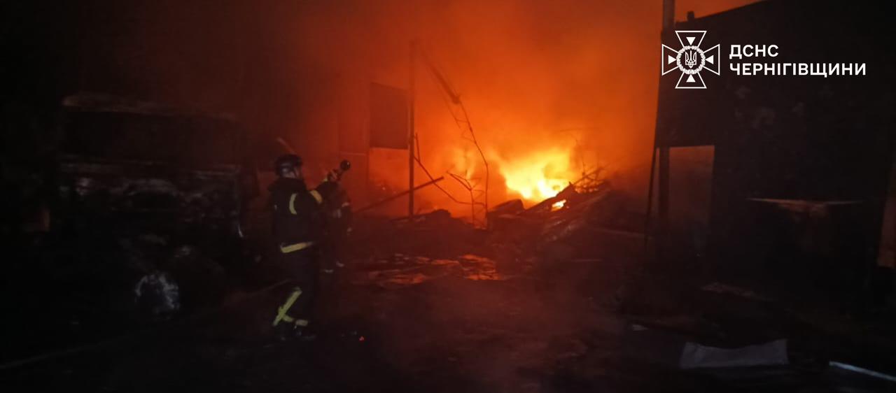 Чернігівщина: вночі російські окупанти завдали серії ударів БпЛА по лісозаготівельному підприємству у прикордонному місті Новгород-Сіверський