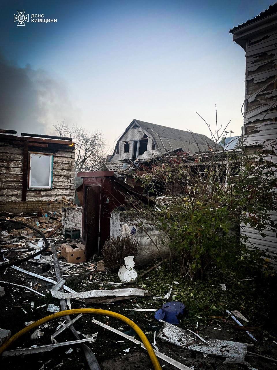 Постраждала 83-річна жінка, яку рятувальники дістали з охопленого вогнем будинку у Броварах. Вона була у шоковому стані, але жива. У Броварах уламки також спричинили пожежу в приватному будинку та загоряння вантажівки з причепом — усе оперативно ліквідовано.