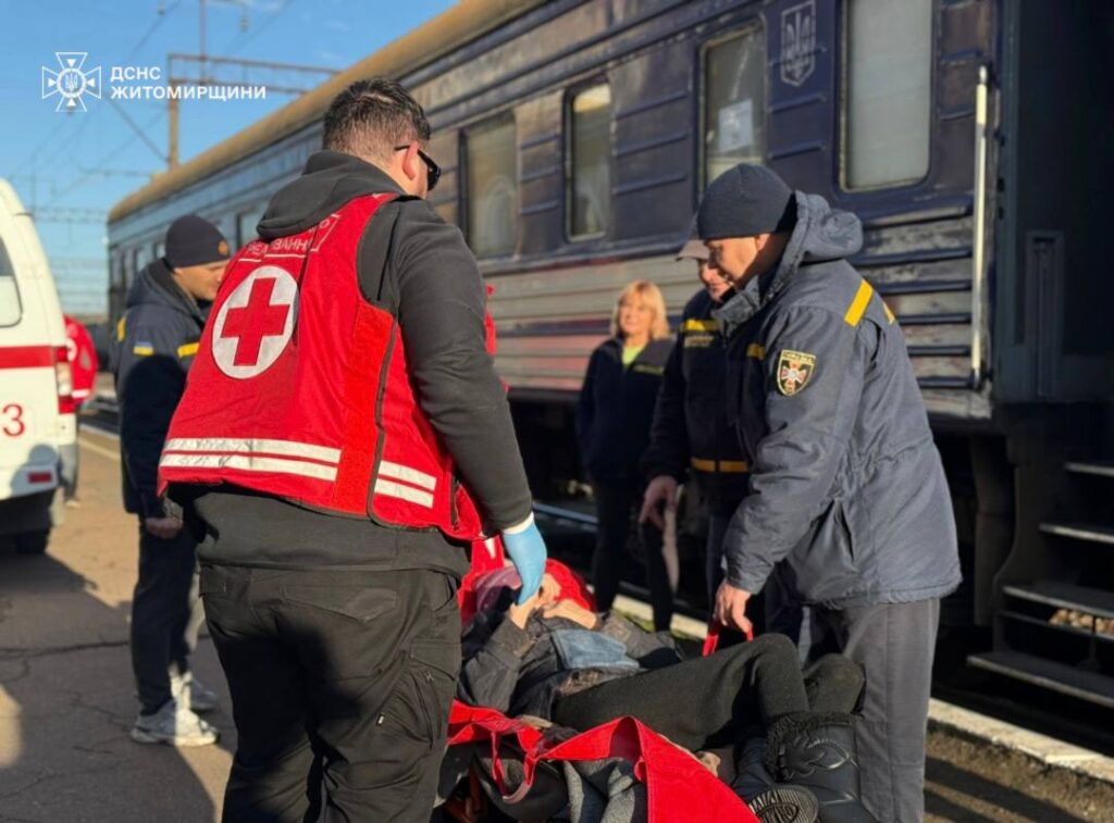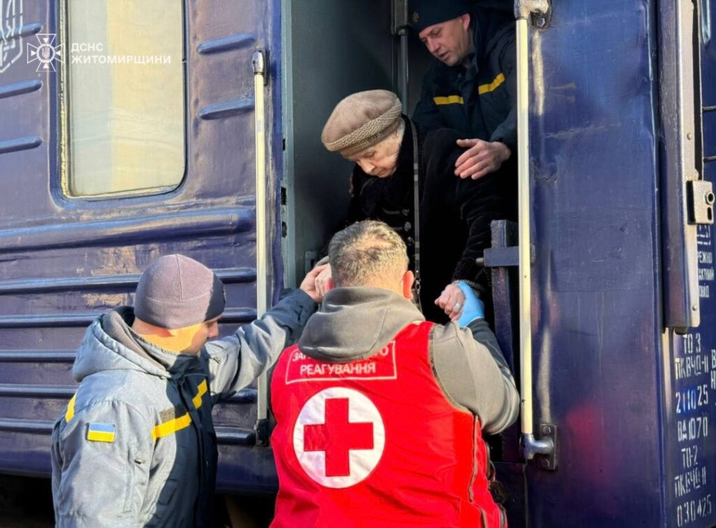 Рятувальники Житомирщини зустріли евакуаційний потяг – до Бердичева прибули 10 літніх людей із прифронтових областей України.