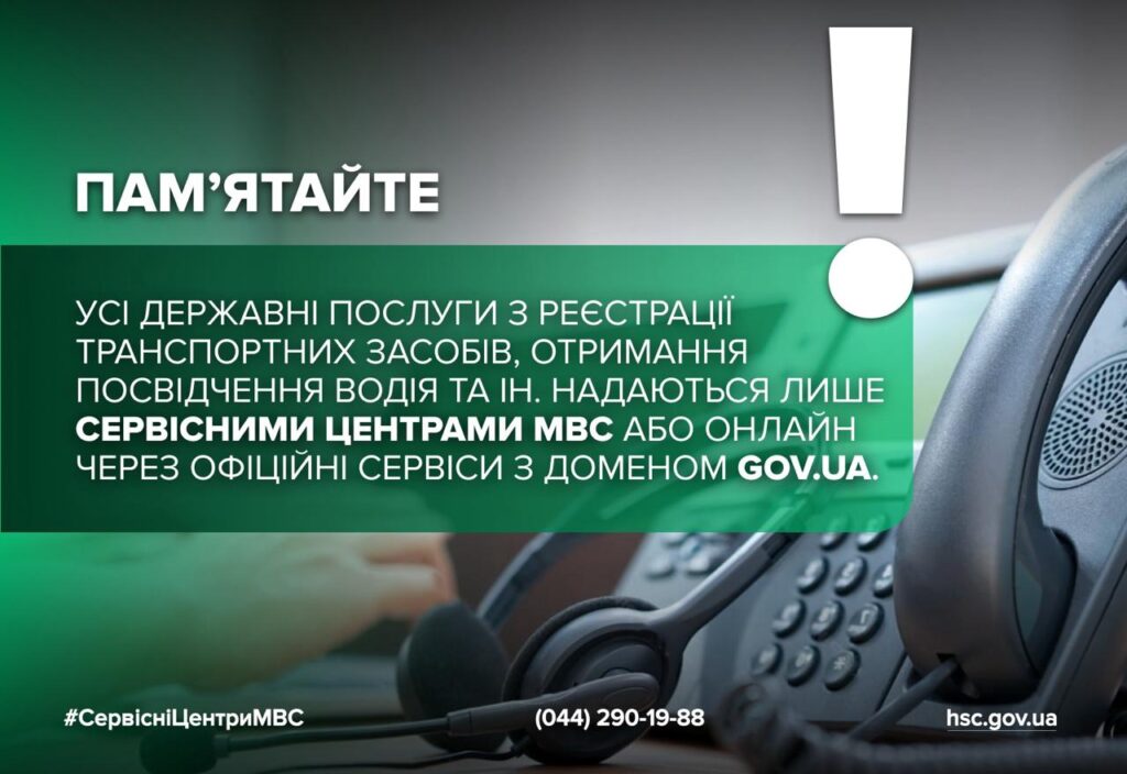 Пам’ятайте: усі державні послуги з реєстрації, перереєстрації транспортних засобів, отримання чи заміни посвідчення водія надаються лише сервісними центрами МВС або онлайн через офіційні сервіси з доменом gov.ua. Якщо ви стали жертвою шахрайства, звертайтеся до кіберполіції.