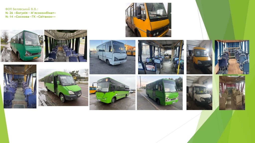 🔹маршрут №26 «Богунія – м’ясокомбінат»; №14 «Соснова – ГК «Світанок» — ФОП БЕЛЯВСЬКИЙ В.В.