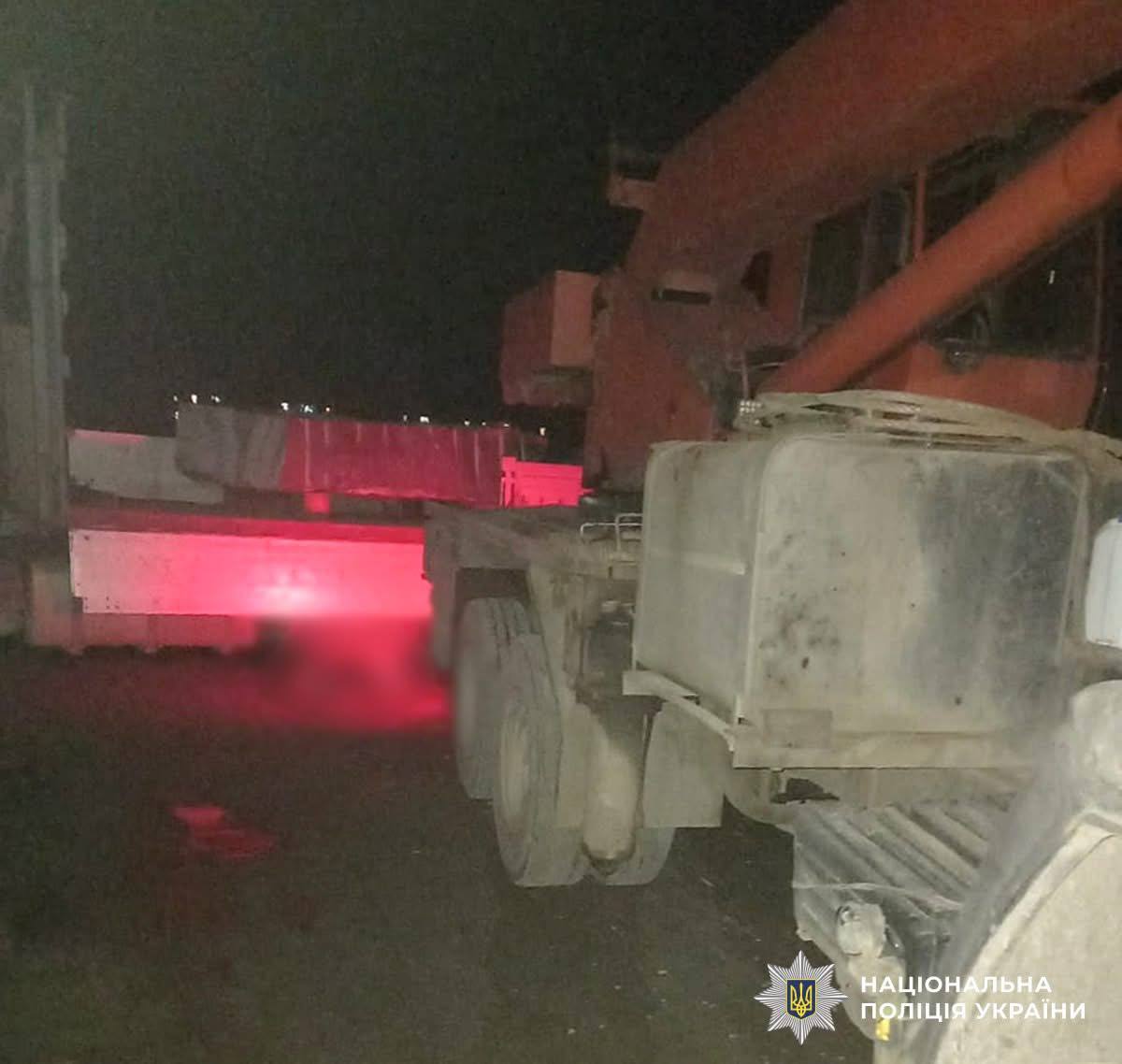 За попередньою інформацією, подія сталася під час розвантаження кам’яних блоків, що перебували у причепі вантажівки Scania. Під час виконання робіт водій автокрана КАМАЗ, 36-річний житель м. Коростишева, рухаючись заднім ходом, здійснив наїзд на 52-річного місцевого жителя. Унаслідок цього чоловіка було притиснуто задньою частиною автокрана до борту причепа вантажівки.