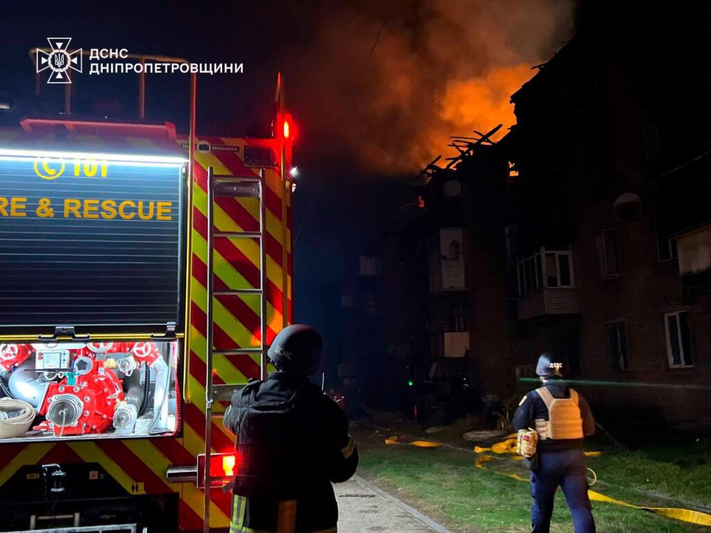 У результаті російського удару виникло кілька пожеж. На одній з локацій частково зруйновані дах та перекриття одного з під’їздів чотириповерхового житлового будинку.