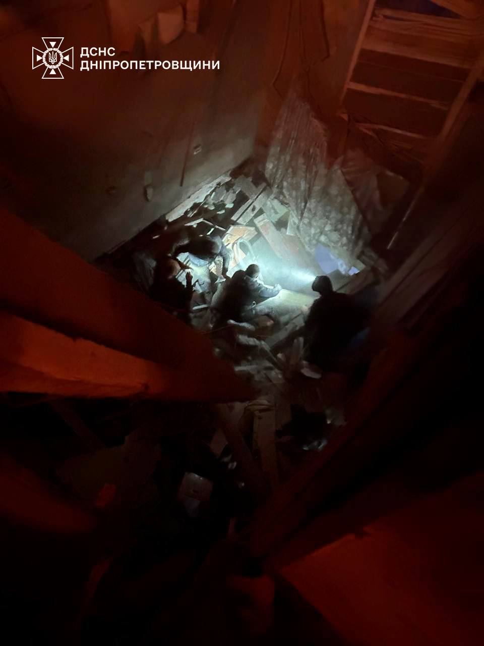 У результаті російського удару виникло кілька пожеж. На одній з локацій частково зруйновані дах та перекриття одного з під’їздів чотириповерхового житлового будинку.