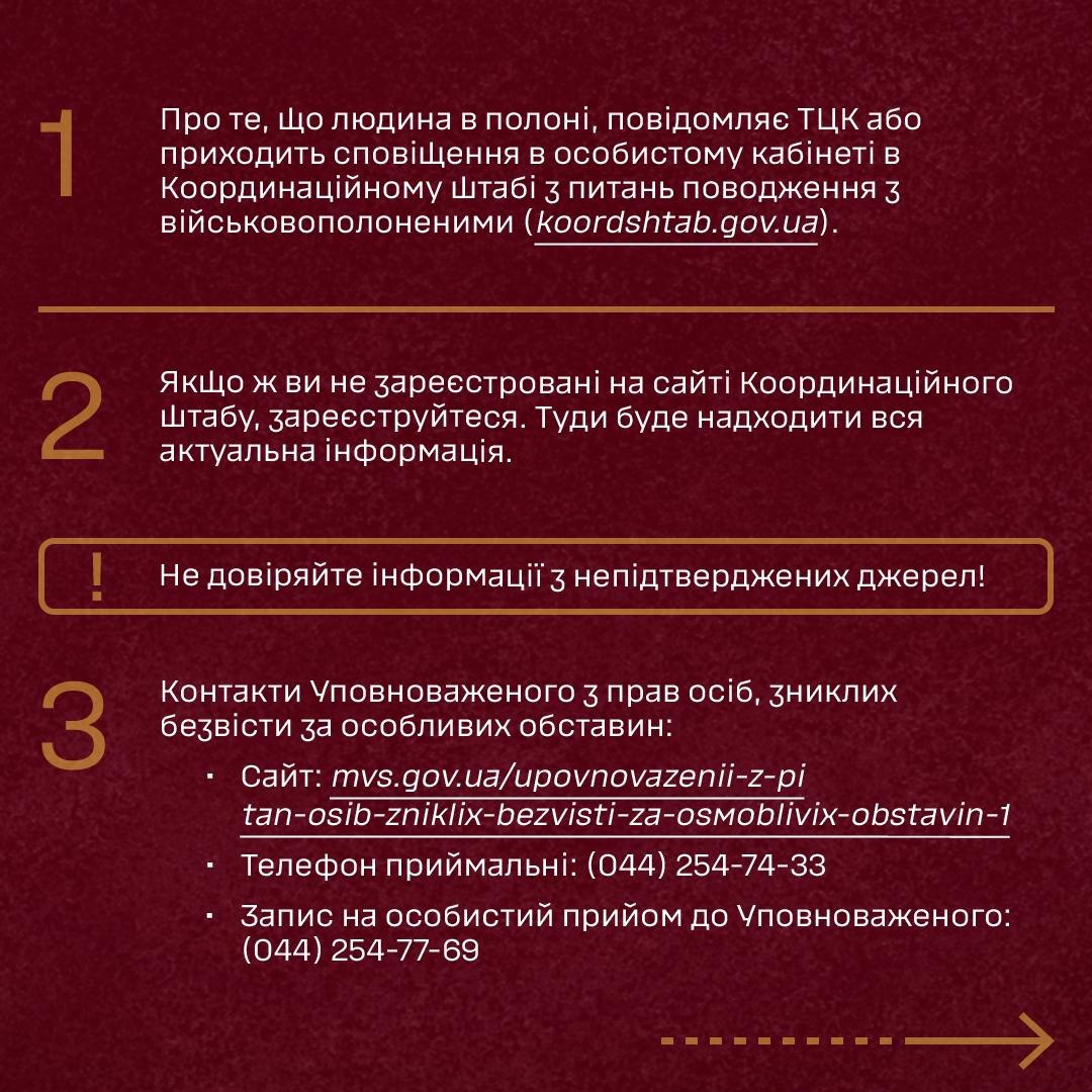 3. Корисним будуть контакти Уповноваженого з прав осіб, зниклих безвісти за особливих обставин: