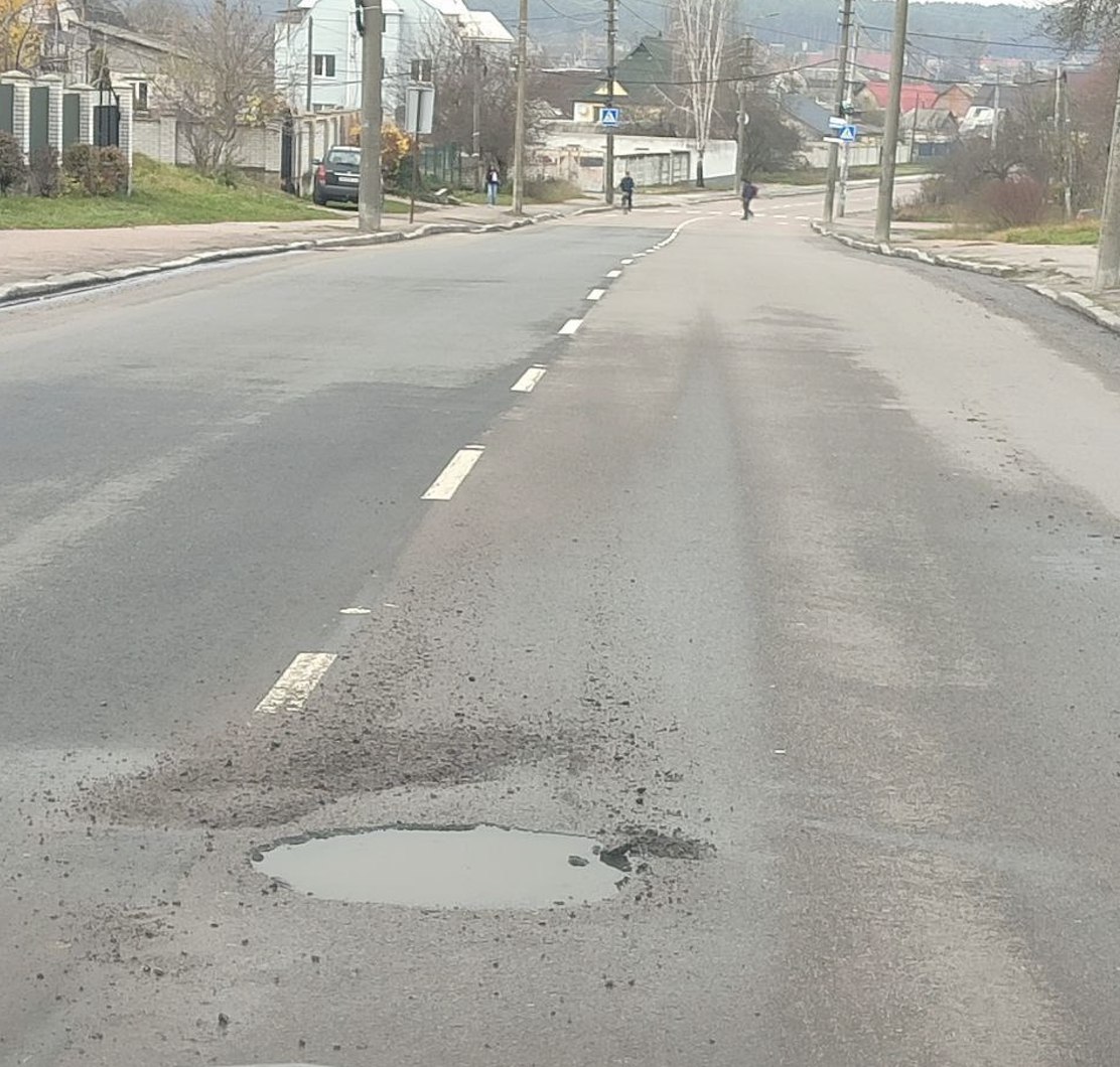 Торік тут провели капітальний ремонт і поклали новий асфальт. Проте вже зараз на дорожньому покритті помітні вибоїни та тріщини, які після дощу заповнюються водою.