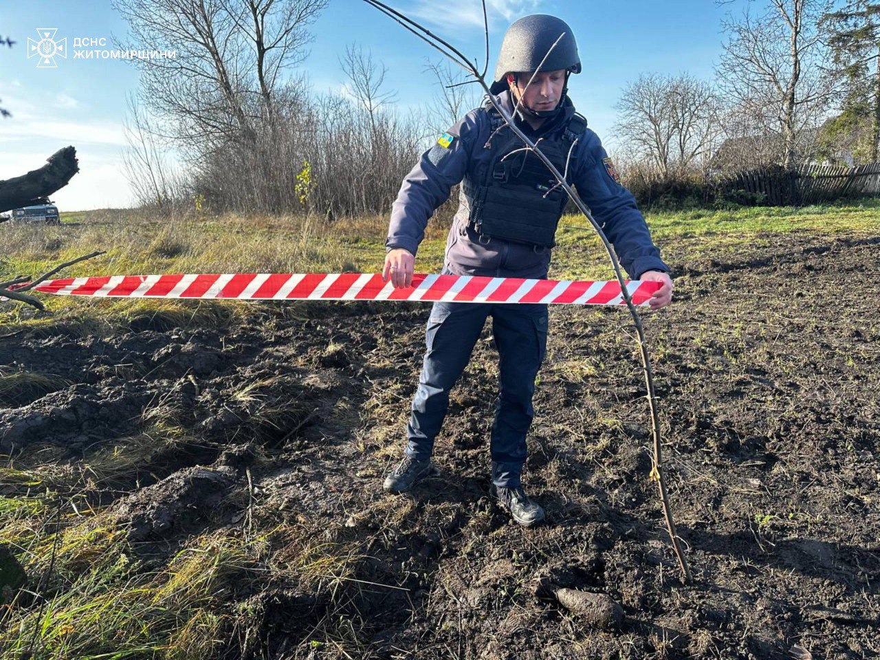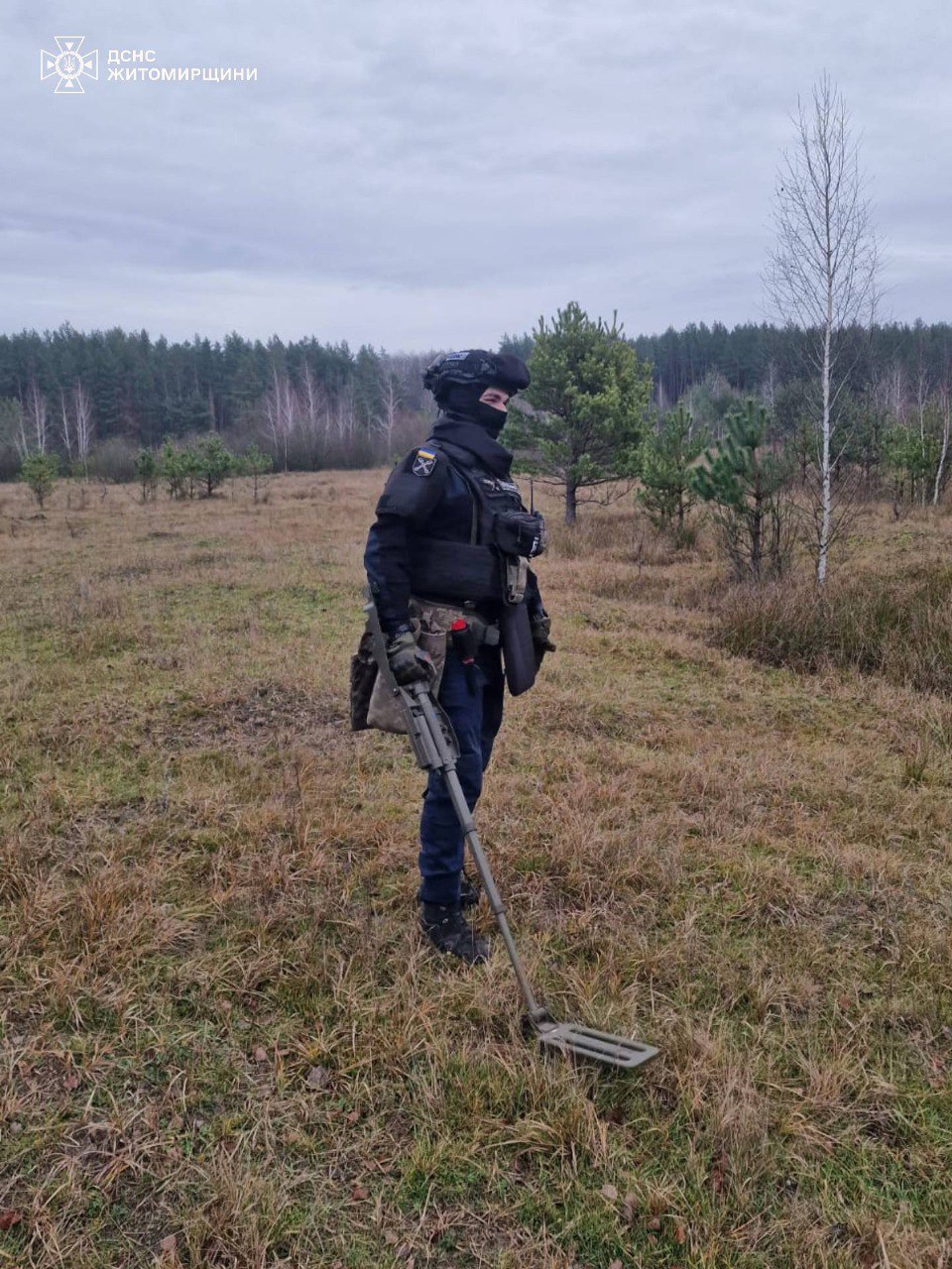Після прибуття сапери ДСНС Житомирщини провели детальне обстеження території та знищили боєприпас в спеціально відведеному місці шляхом підриву.