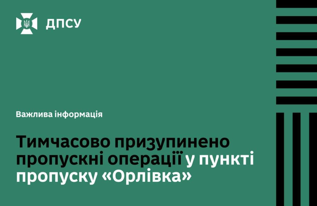 У зв’язку з призупиненням пропускних операцій у поромному пункті пропуску «Орлівка», що стало наслідком ворожої атаки російської федерації, для Вашої зручності пропонуємо використовувати наступні пункти пропуску для перетинання державного кордону: