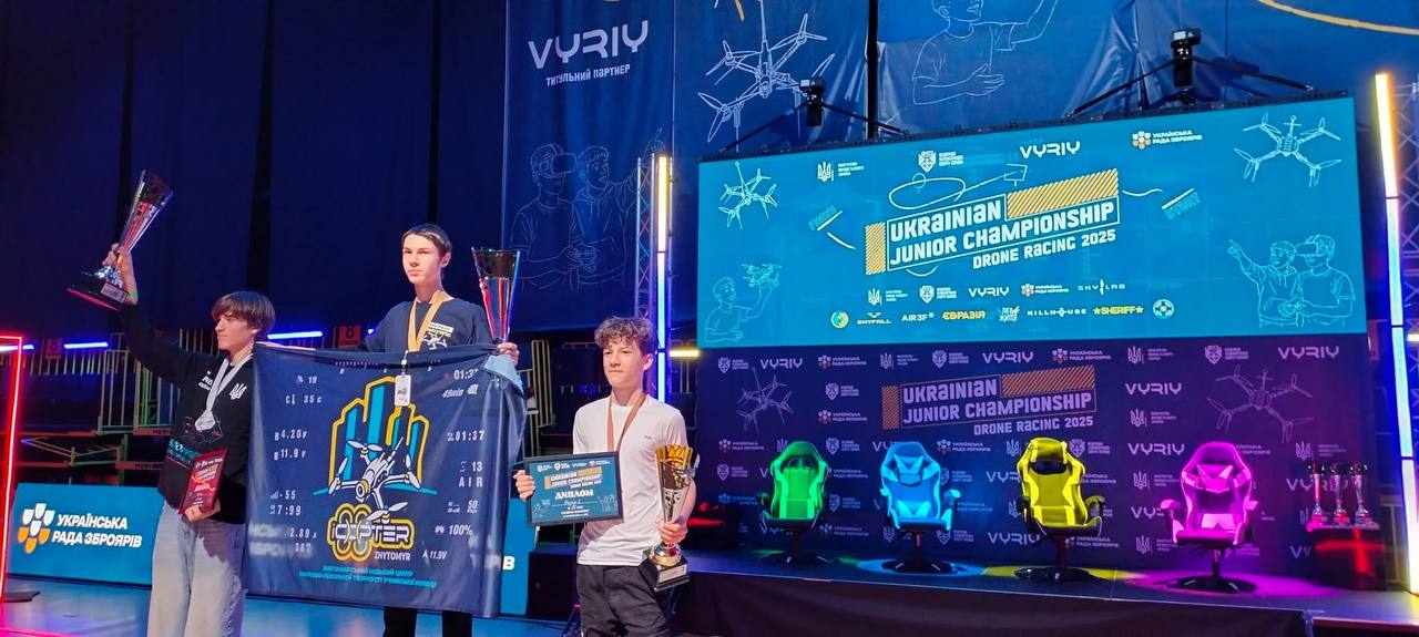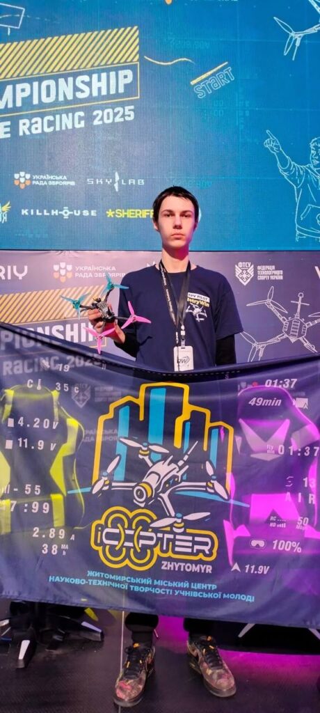 За результатами чемпіонату Владислав Ляшевич став ЧЕМПІОНОМ України з технологічного спорту у дисципліні «Дрон-рейсинг» серед дітей, юнаків та юніорів (Ukrainian Junior Championship Drone Racing 2025).