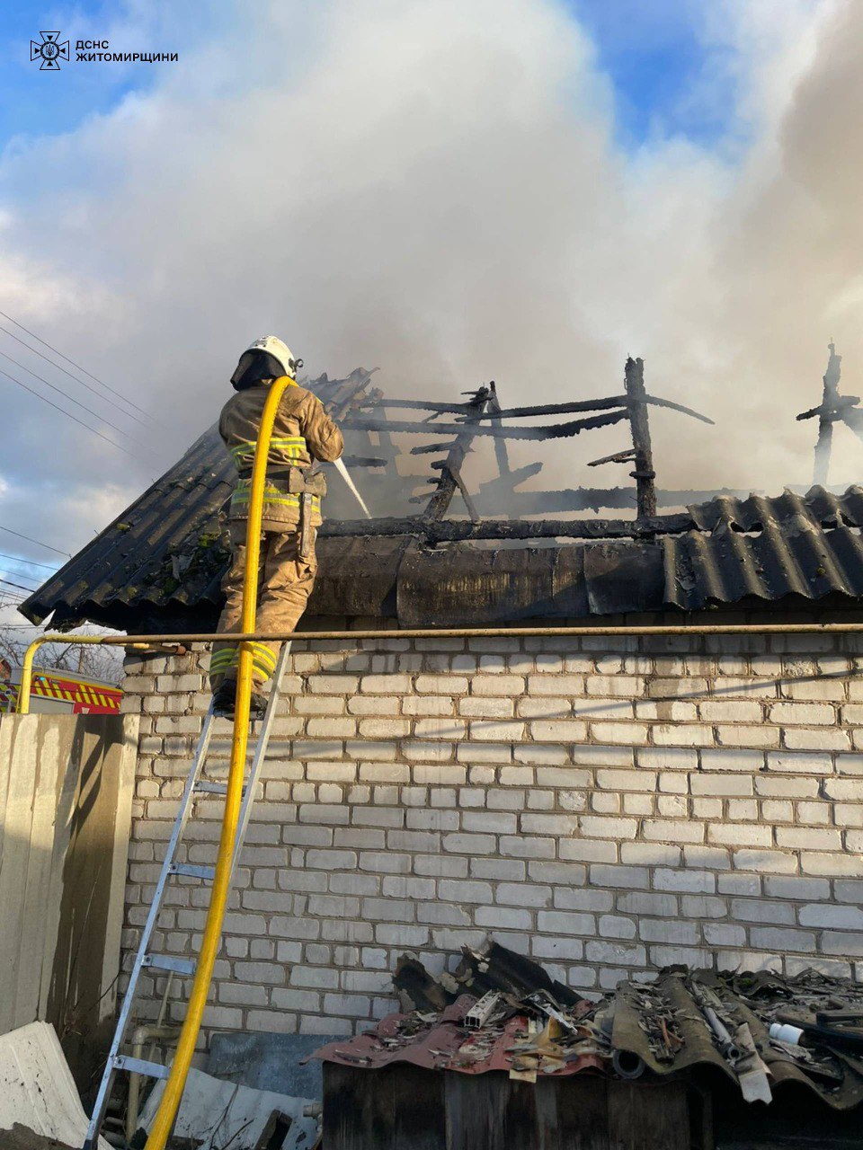 На момент прибуття вогнеборців горів дах будівлі та господарчі речі всередині, існувала загроза поширення полум’я на ще одну господарчу споруду.