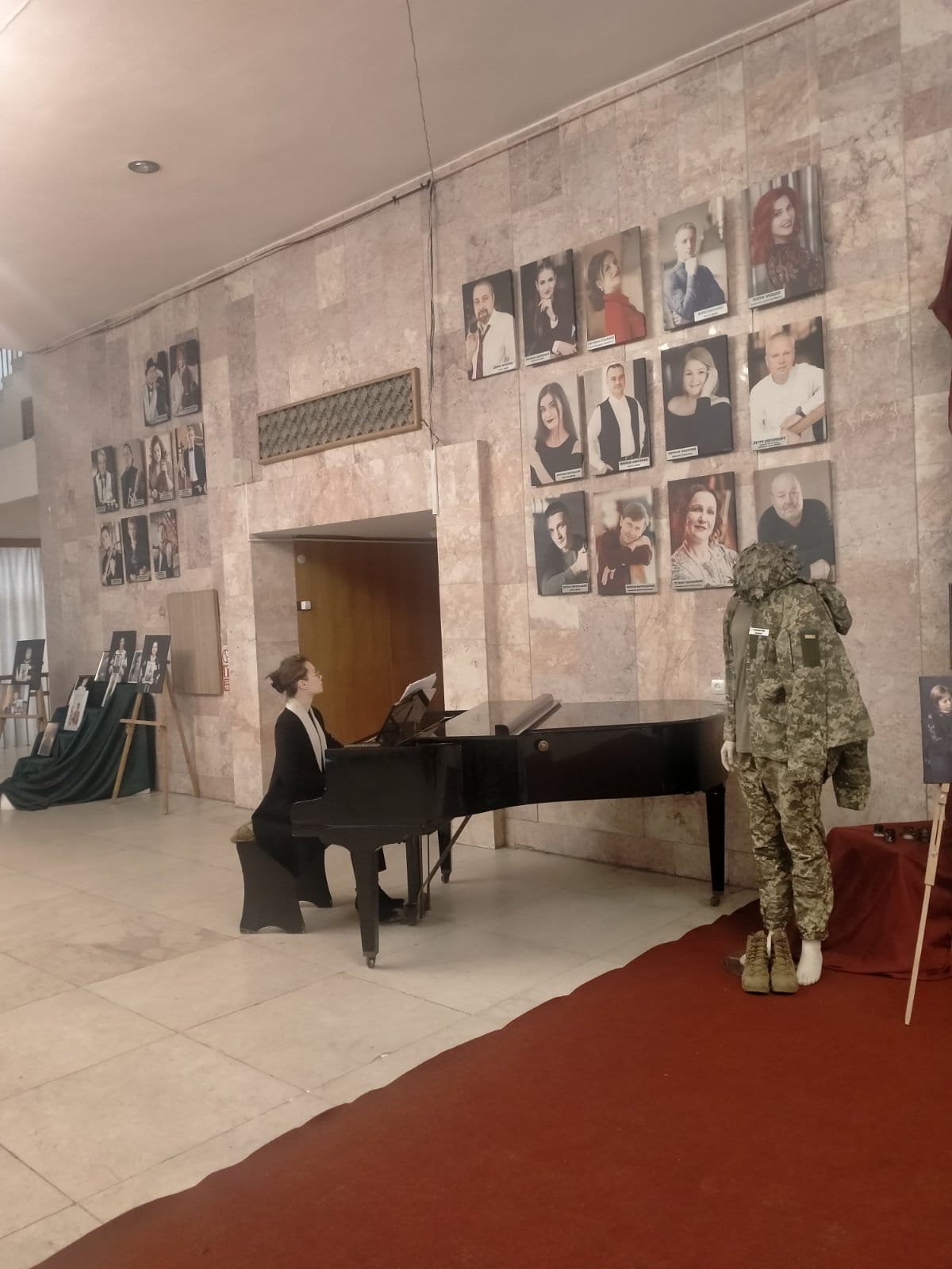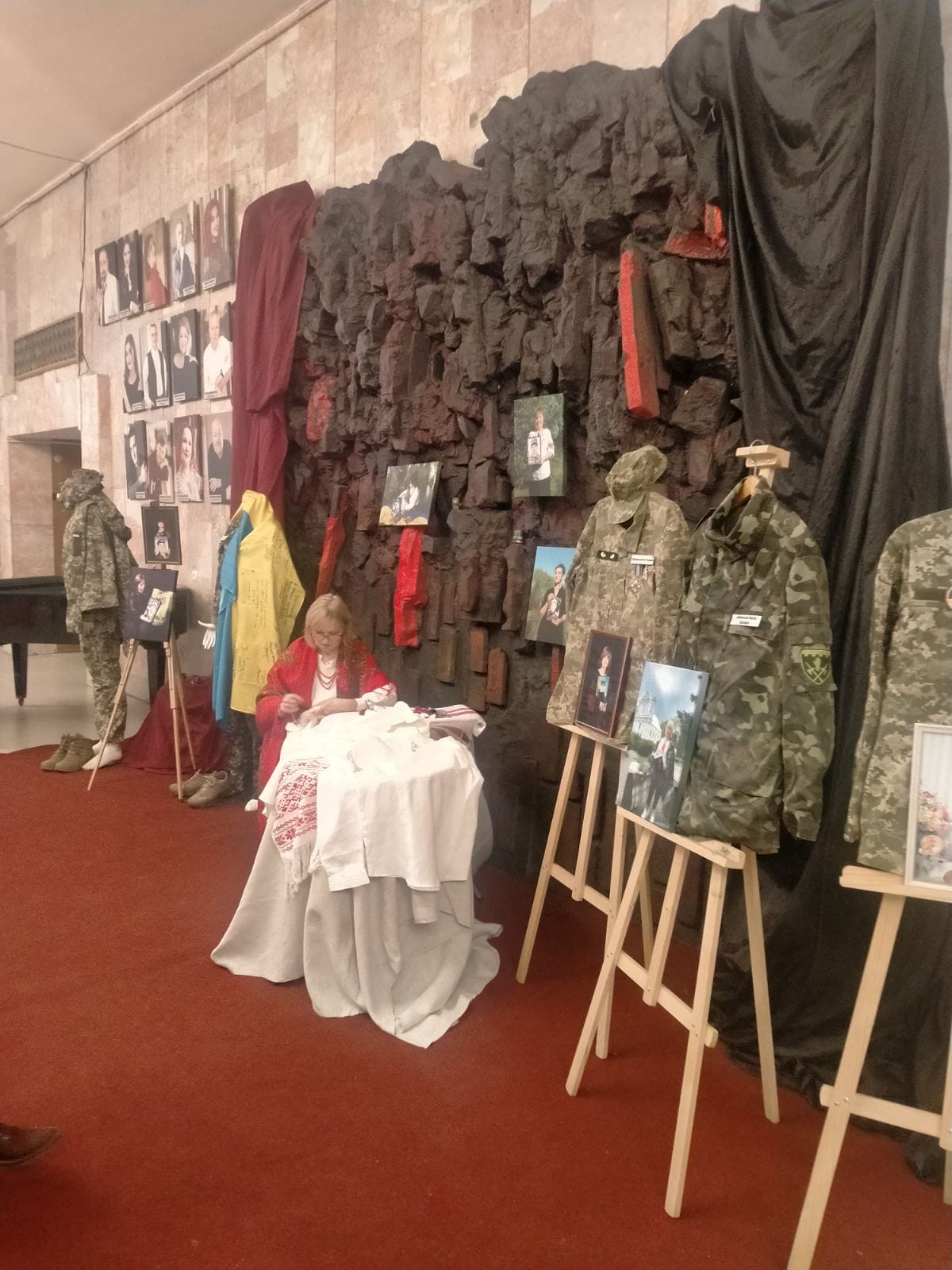 У фойє театру панувала особлива, тиха й дуже глибока атмосфера. Тут відкрилася виставка світлин матерів із фотографіями своїх загиблих синів, а поруч — особисті речі воїнів, які віддали життя за Україну. Серед портретів представники Оліївської громади з особливим трепетом підходили до фото Гнатюк Тетяни Павлівни, мами загиблого воїна з села Сонячне Оліївської громади Володимира Гнатюка.