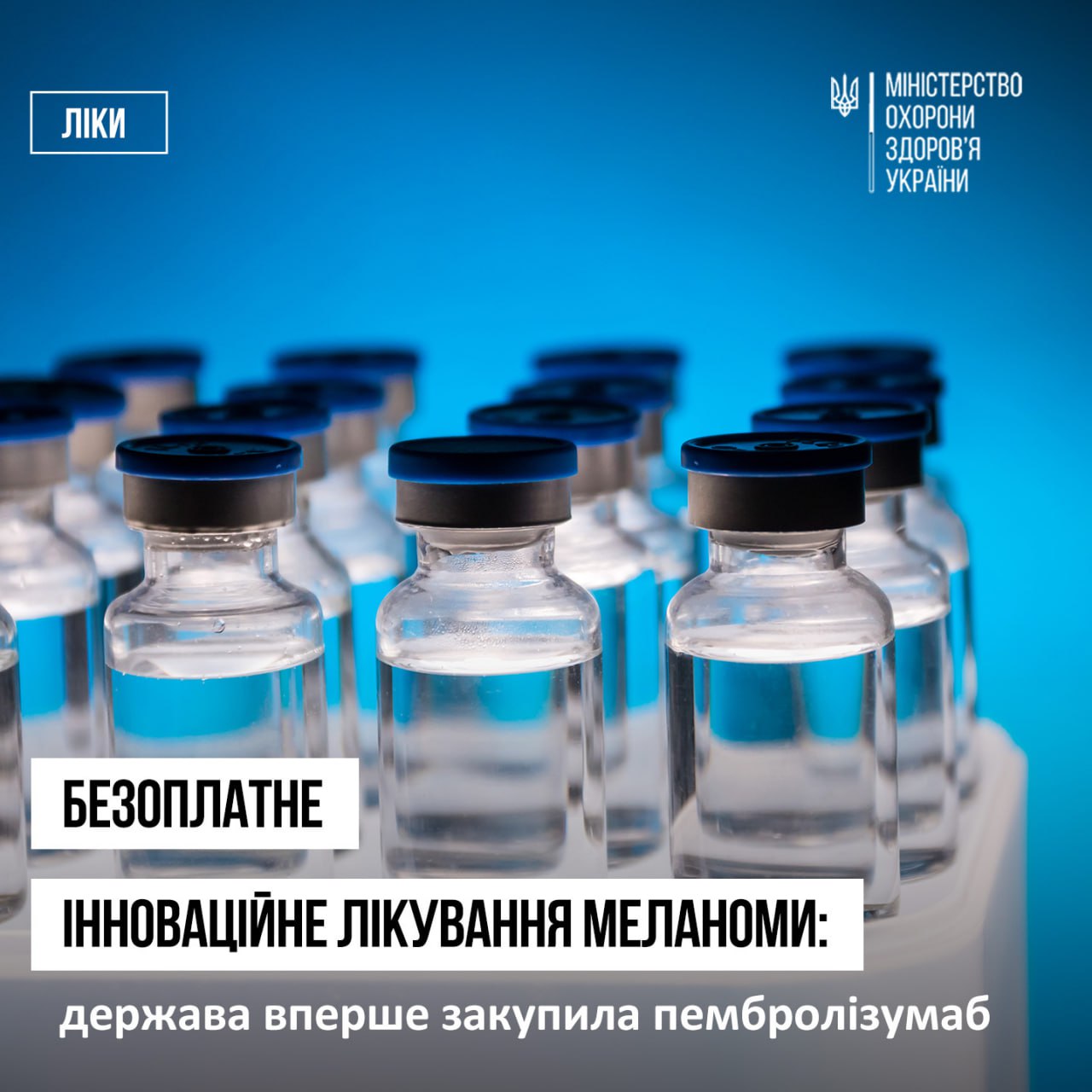 Медичні закупівлі України уклали трирічний договір із виробником Merck Sharp & Dohme (США) на закупівлю інноваційного препарату пембролізумаб (торгова назва – Кітруда) для лікування пацієнтів з нерезектабельною або метастатичною меланомою.