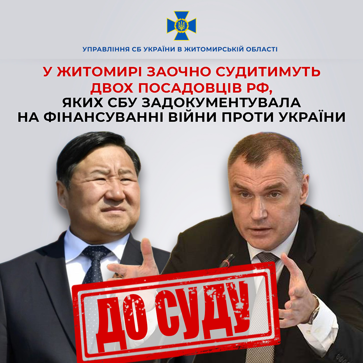 Слідчі Служби безпеки Житомирщини завершили досудове розслідування щодо голів двох республік рф, причетних до фінансування російської армії у війні проти України.
