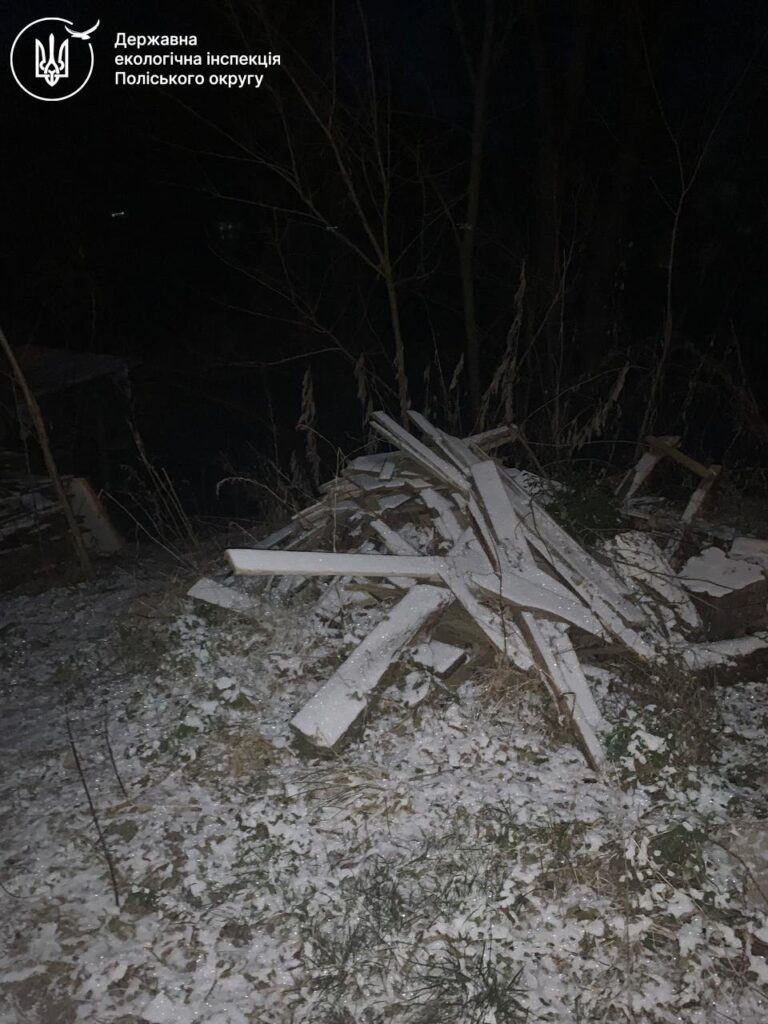 Цього ж дня екоінспекторами проведено обстеження території у місті Житомир, засміченої відходами руйнації приватної житлової забудови внаслідок комбінованого ворожого удару по місту Житомиру 23 грудня. У ході обстеження зафіксовано засмічення земельної ділянки загальною площею 635 м².