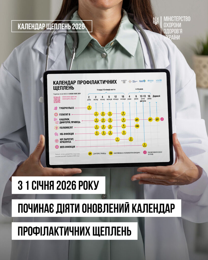 З 1 січня 2026 року набувають чинності зміни, що приводять практику вакцинації в Україні у відповідність до сучасних практик, міжнародних стандартів, досвіду країн Європи та результатів наукових досліджень.