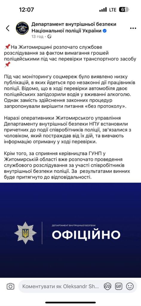 Ми вимагаємо від керівника ГУНП у Житомирській області: