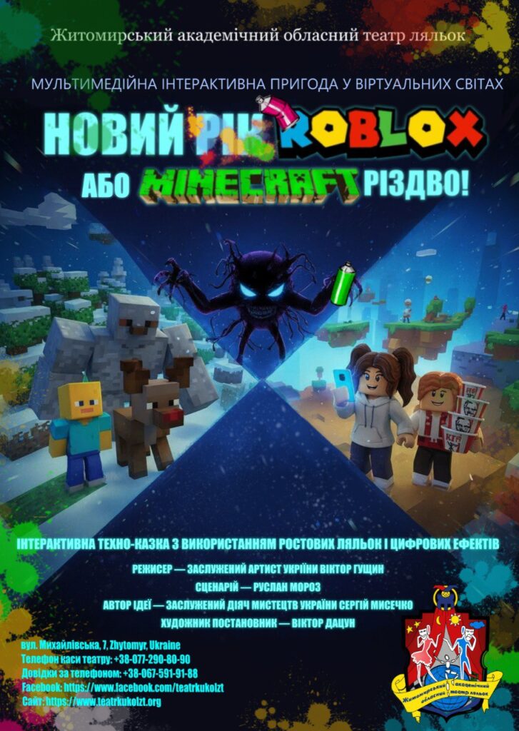 Вистава «Новий Roblоx, або Minecraft Різдво!», створення за мотивами видових комп’ютерних ігор користується настільки великим попитом серед маленьких глядачів, що театр вирішив провести додаткові вистави для всіх бажаючих.