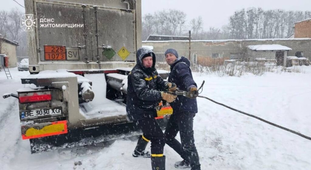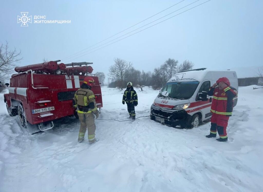 У Житомирі через негоду визволили вантажівку зі снігового замету, у Житомирському та Коростенському районах таку ж допомогу надавали працівникам “швидким”. В одну допомогли транспортувати хворого з будинку.
