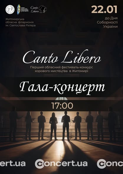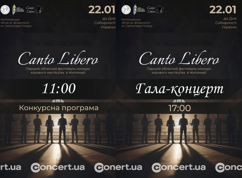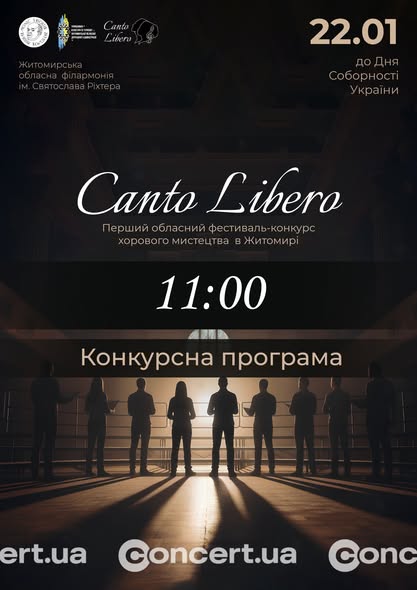 22 січня, у День Української Соборності, Житомирська обласна філармонія ім. С. Ріхтера стане простором великого хорового єднання. Цього дня відбудеться перший обласний фестиваль-конкурс хорового мистецтва “Canto Libero” — подія, що відкриває нову сторінку в музичному житті Житомирщини.