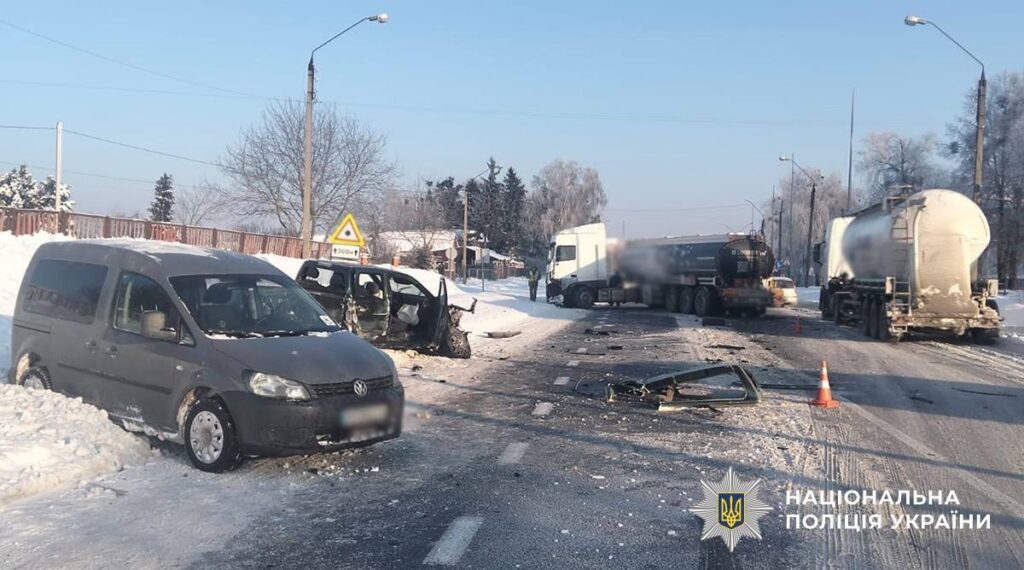 Попередньо встановлено, що сталося зіткнення автомобілів DAF, під керуванням 24-річного жителя Сумщини, та Isuzu, за кермом якого перебував 40-річний житель Тернопільщини. Потім останній за інерцією зіткнувся мінівеном Volkswagen.