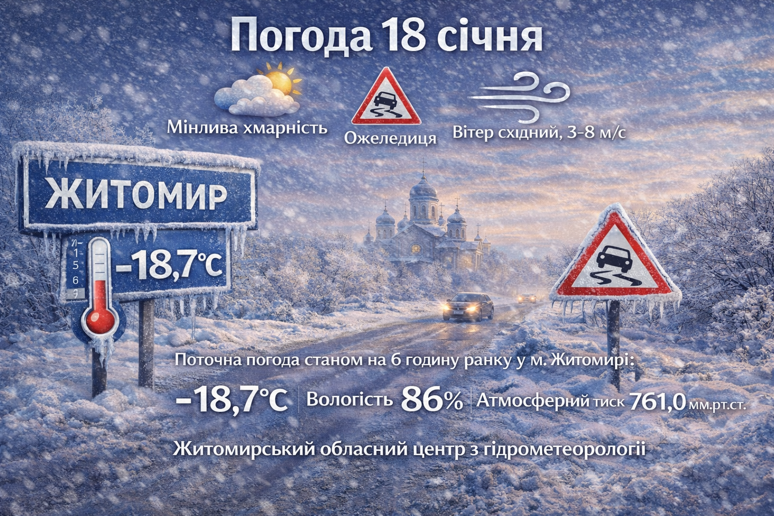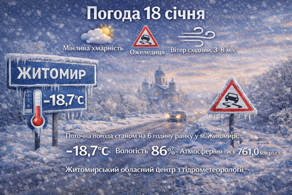 Прогноз погоди на день 18 січня по Житомирській області: