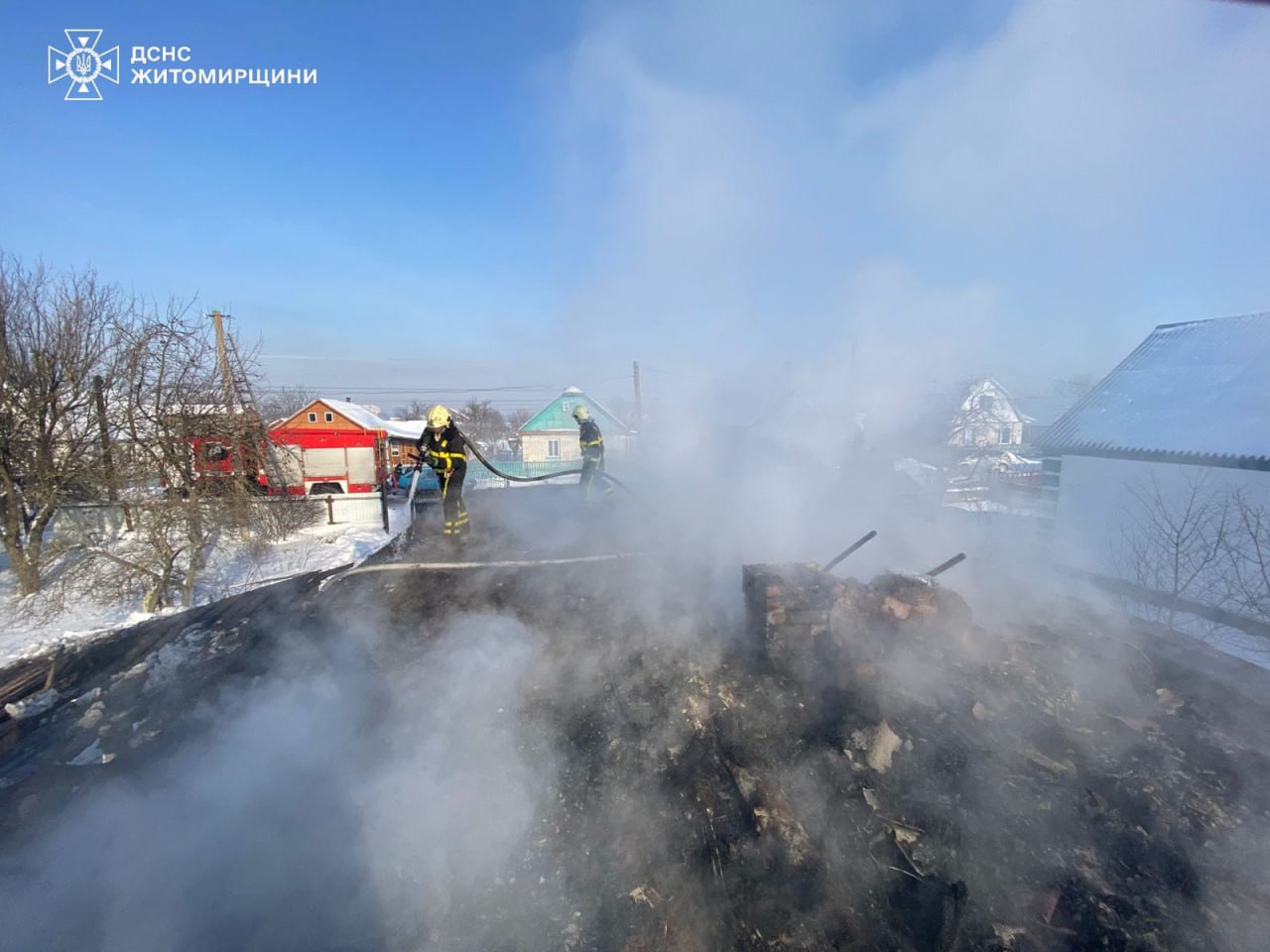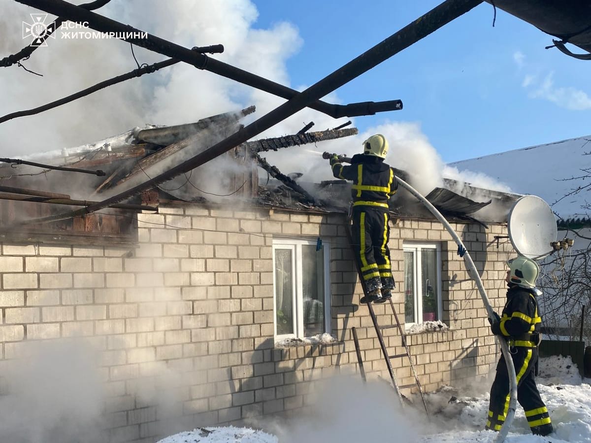 Надзвичайна подія сталася у селищі Черняхів. По прибуттю рятувальників до місця виклику було встановлено, що горить покрівля будинку. Фахівці ДСНС запобігли перекиданню полум’я на поруч розташовану господарчу споруду. Пожежу ліквідували. Вогнем знищено покрівлю по всій площі, пошкоджено перекриття.