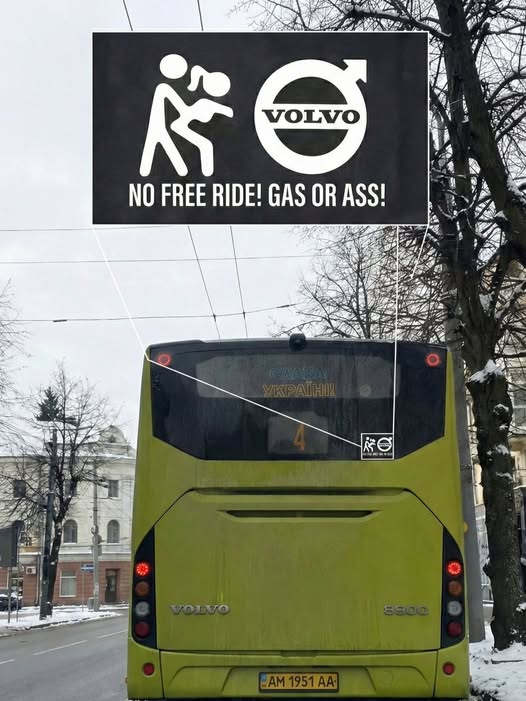 Даний напис перекладається як: “Безкоштовних поїздок не буває! Або бензин, або анальний секс!
