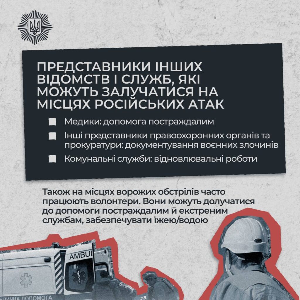 Також розповідаємо про те, які підрозділи системи МВС та інших відомств працюють на місцях ворожих ударів та як вони можуть допомогти у критичній ситуації.