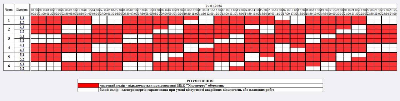 Оперативна інформація станом на 08.00 27 січня 2026 року