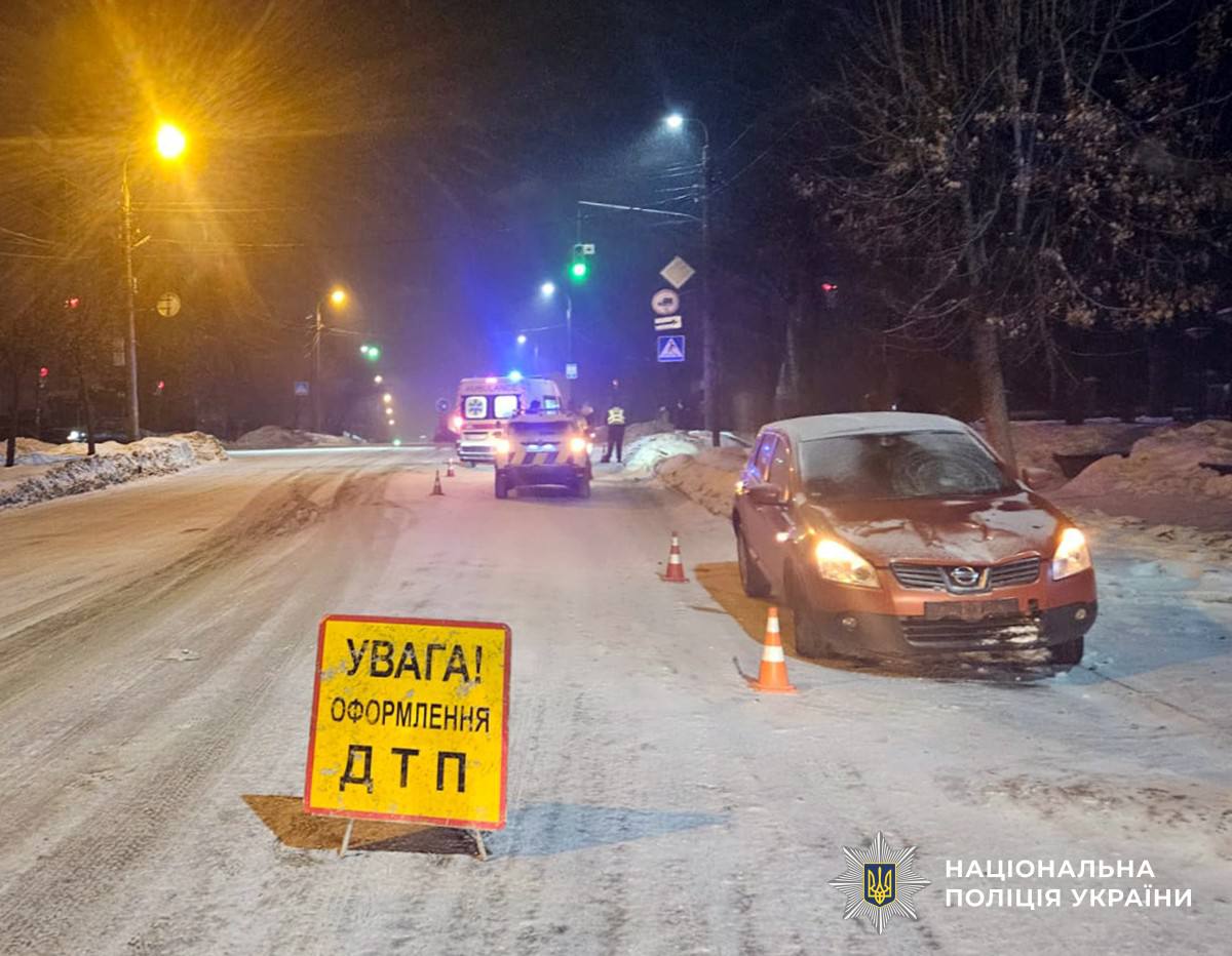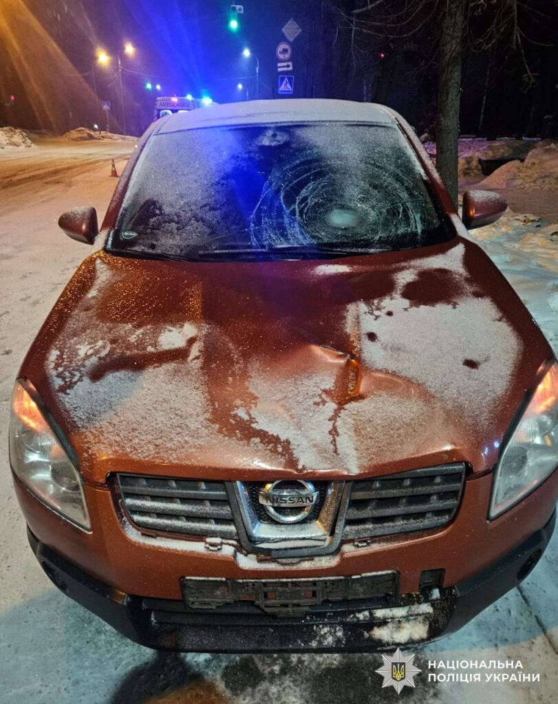 За попередніми даними, водій автомобіля Nissan Qashqai, 26-річний житомирянин, допустив наїзд на чоловіка, який перетинав дорогу по регульованому пішохідному переходу.