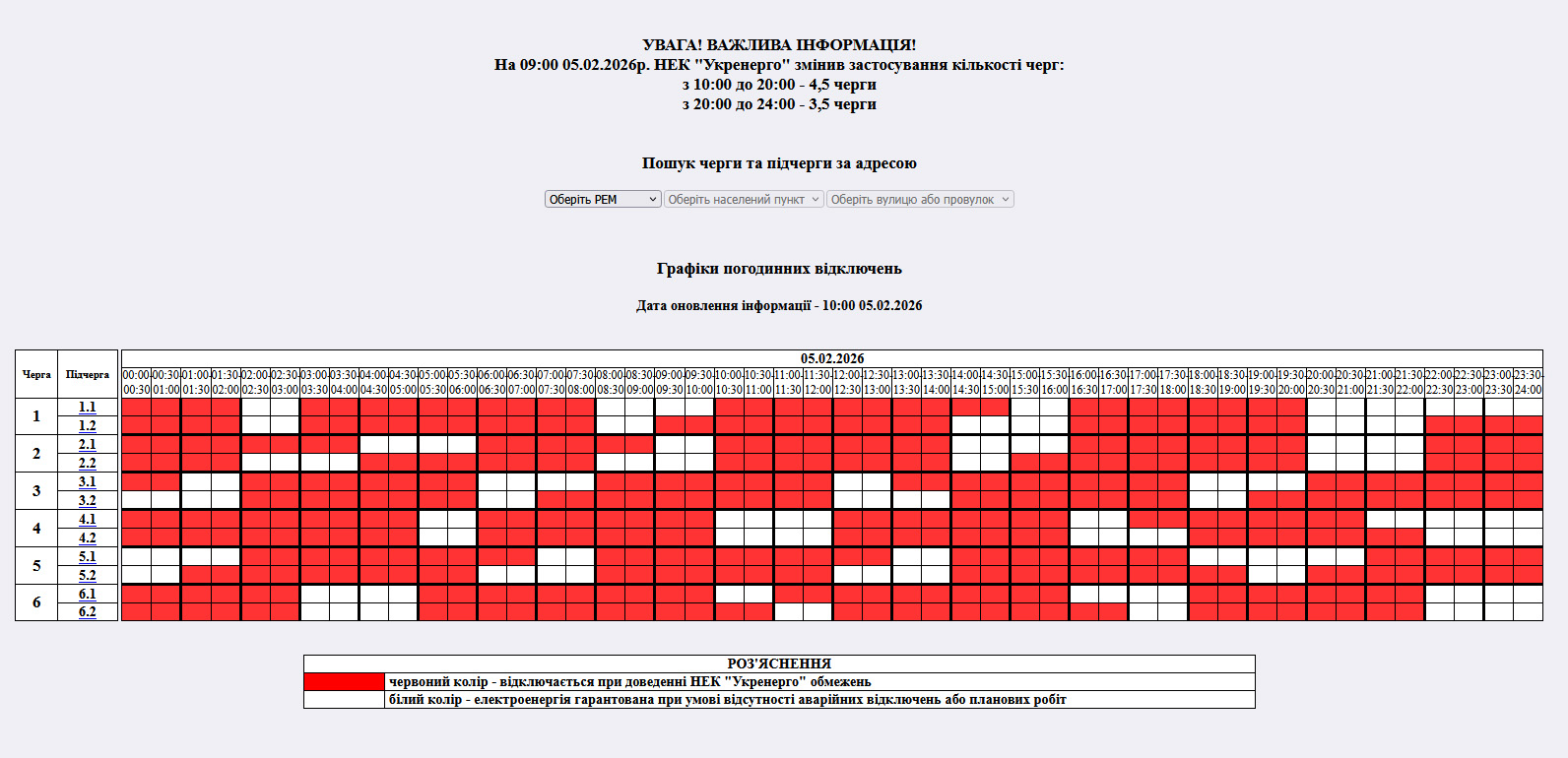 з 00:00 до 24:00 – графіки погодинних відключень (ГПВ)