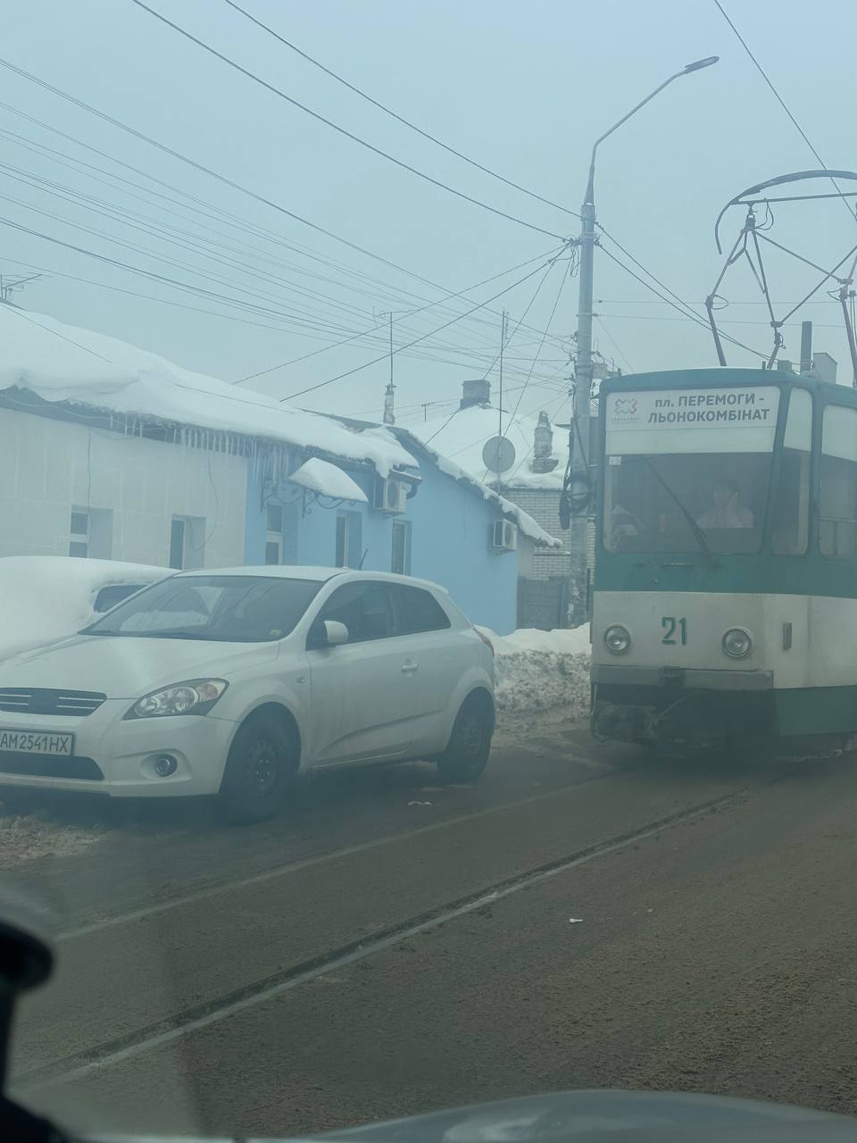 11 лютого близько 10:54 через неправильно припаркований Nissan на майдані Перемоги рух трамваїв було обмежено.