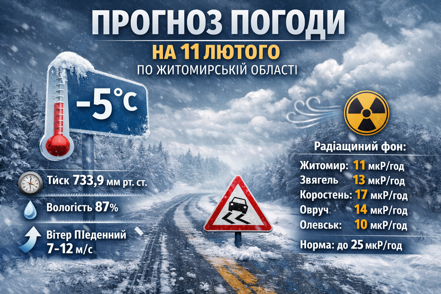 Прогноз погоди на день 11 лютого по Житомирській області: