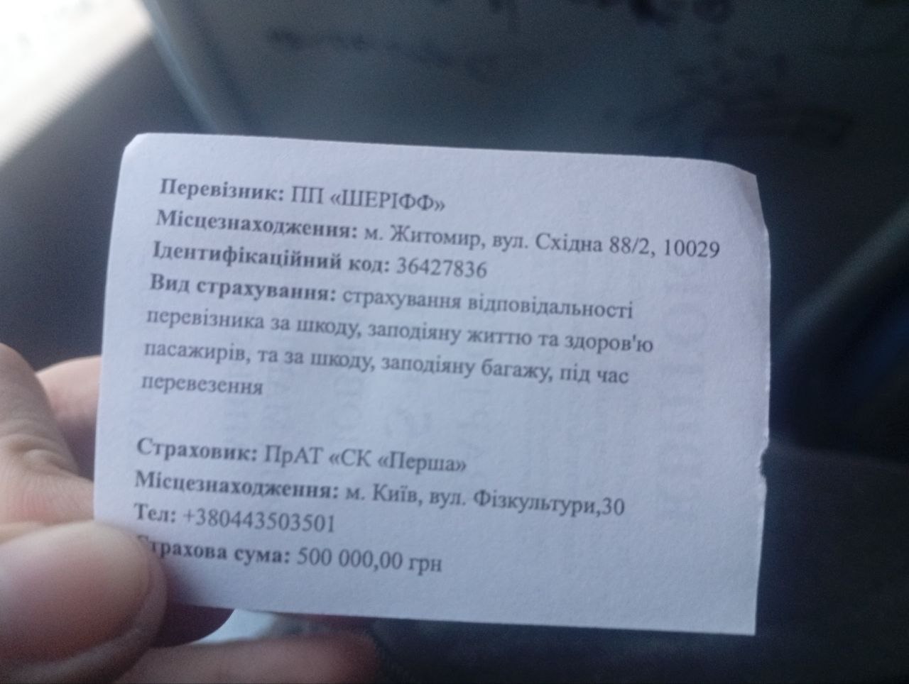 Це позбавляє пасажира можливості оперативно зв’язатися з компанією у разі скарг чи забутих речей. Також відсутність часу та дати робить неможливим використання цього квитка як доказу для страхової виплати у разі ДТП.