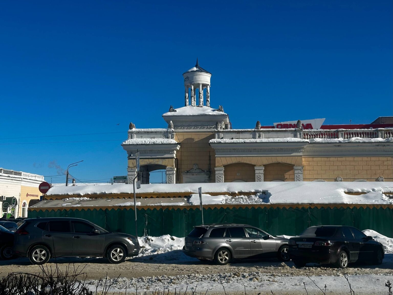 ▫️Палатка повністю закриває огляд на пам’ятку архітектури поруч. Ансамбль споруд ринку, який має бути видимим і читабельним у міському просторі.