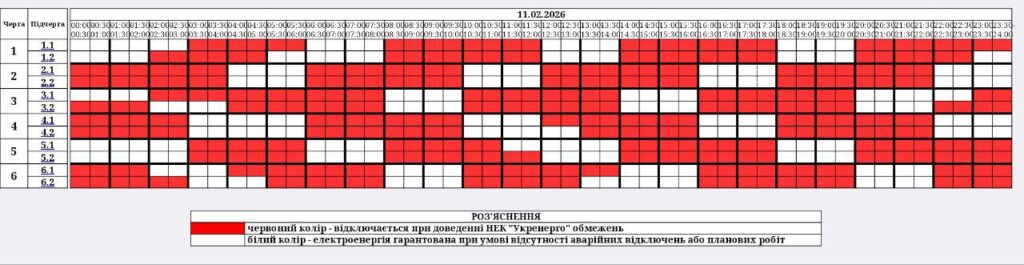 з 00:00 до 24:00 – графіки погодинних відключень (ГПВ)