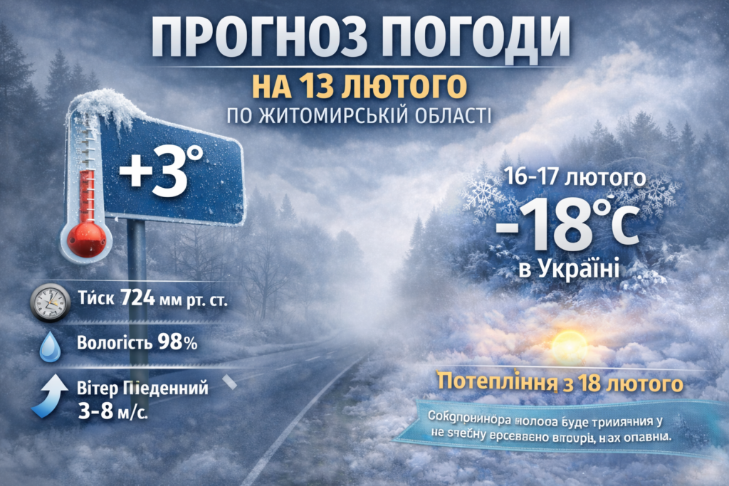 Прогноз погоди на день 13 лютого по Житомирській області: