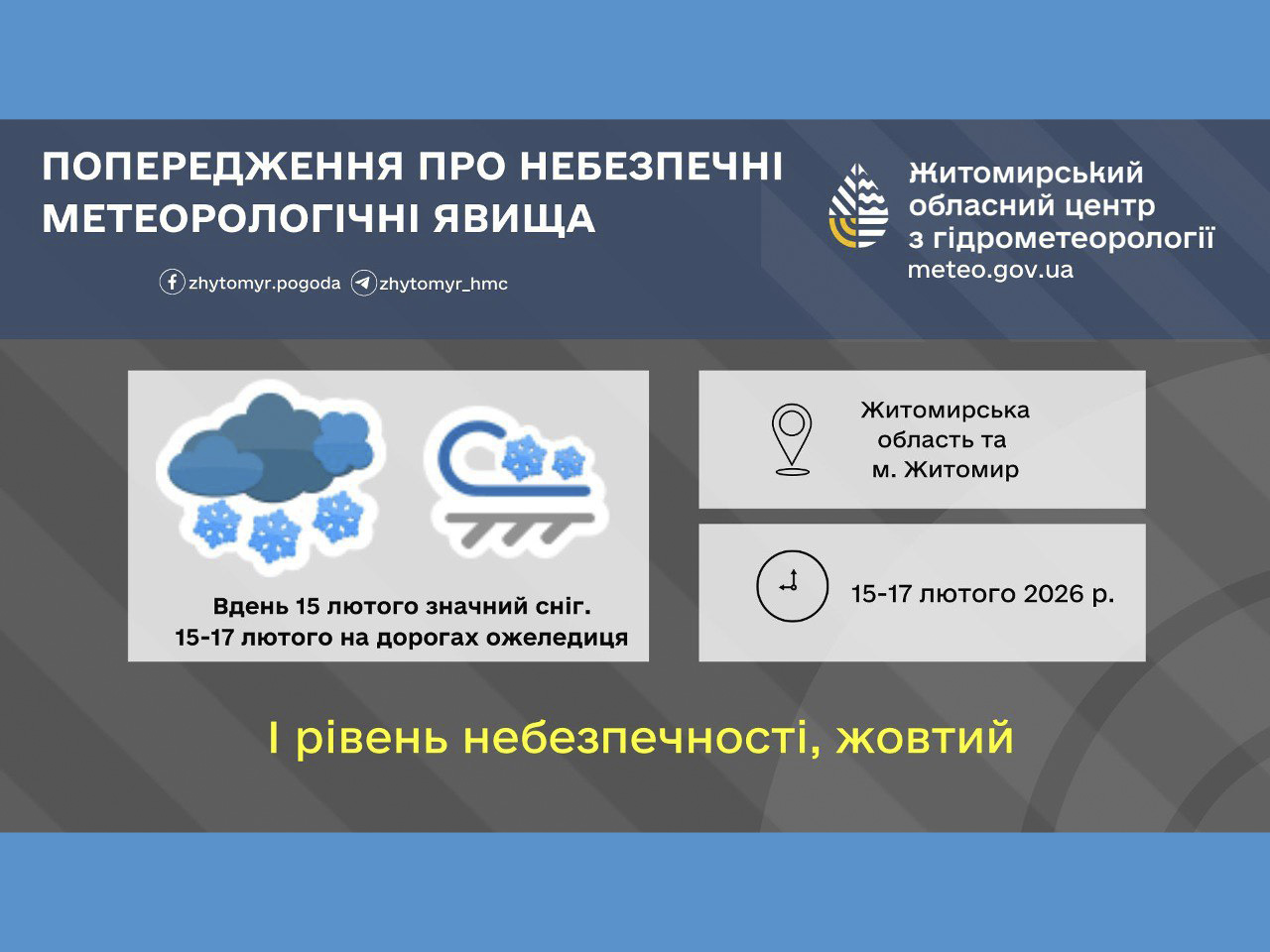 Вдень 15 лютого у Житомирській області та м. Житомирі значний сніг 15-17 лютого на дорогах ожеледиця!