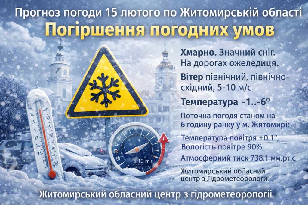 Home»Топ-новини»Прогноз погоди на день 15 лютого по Житомирській області: Погіршення погодних умов