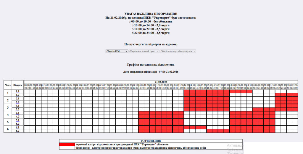 з 00:00 до 24:00 – графіки погодинних відключень (ГПВ)