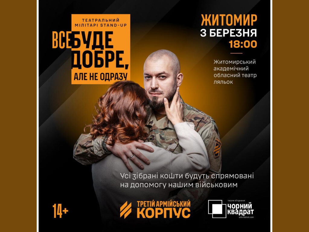 Home»Війна»Запрошуємо на документальну виставу «Все буде добре, але не одразу» від Третього армійського корпусу, яка відбудеться 3 березня о 18.00 у Житомирському академічному обласному театрі ляльок